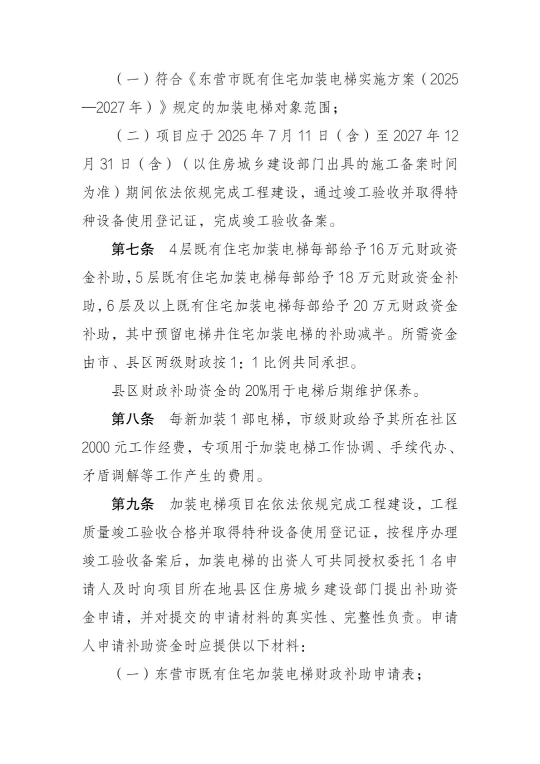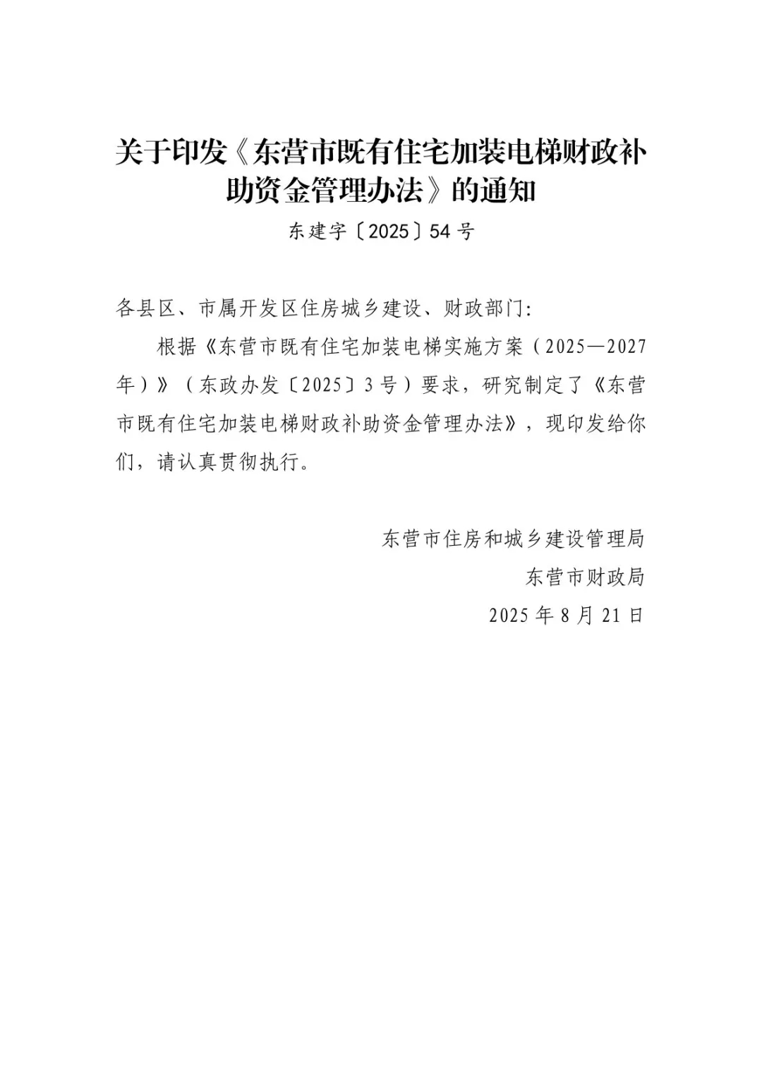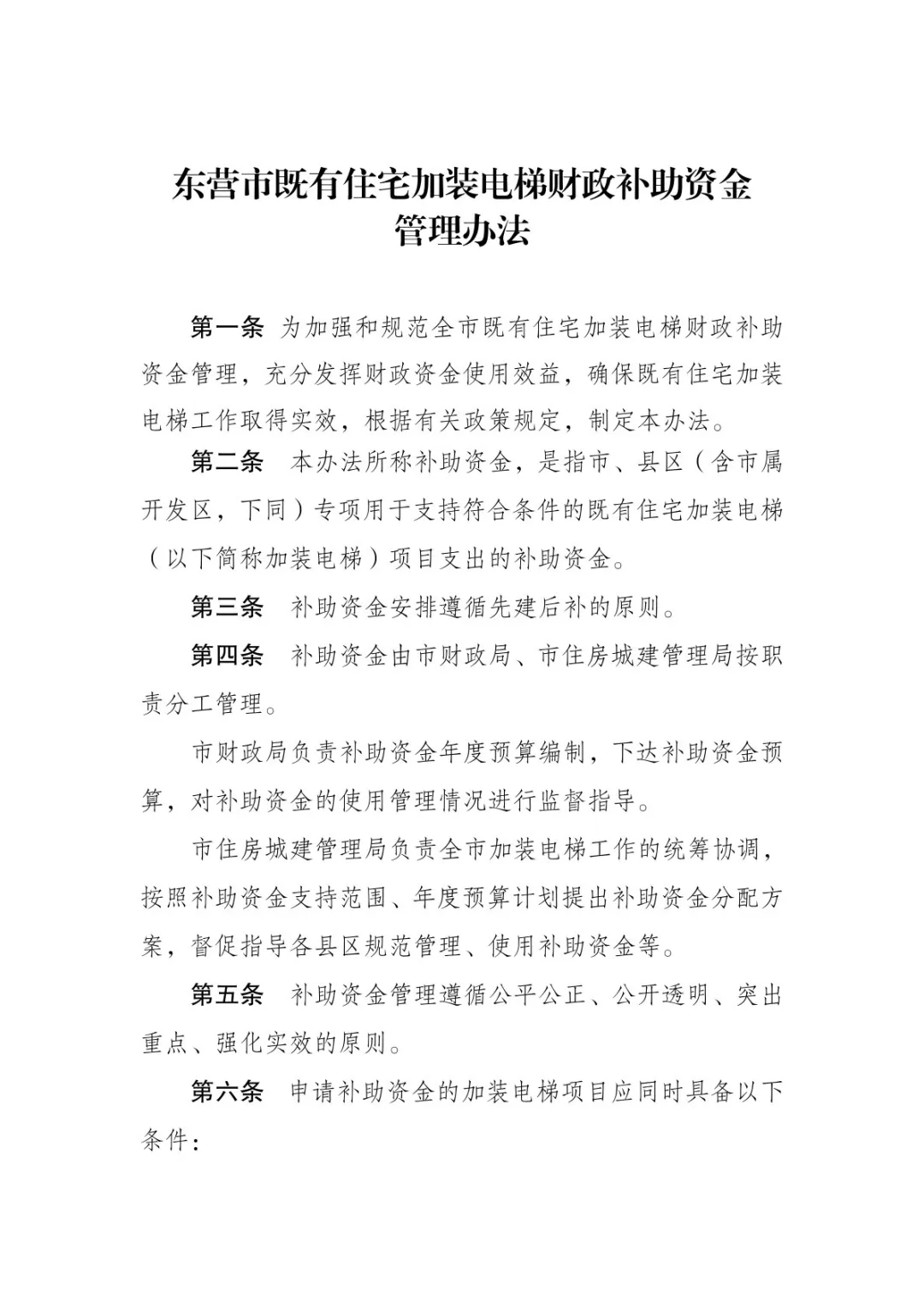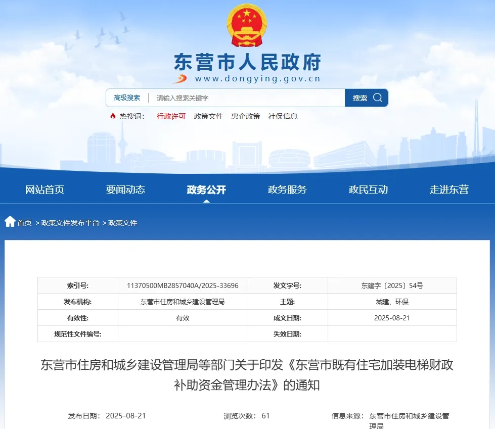 《东营市既有住宅加装电梯财政补助资金管理办法》的通知